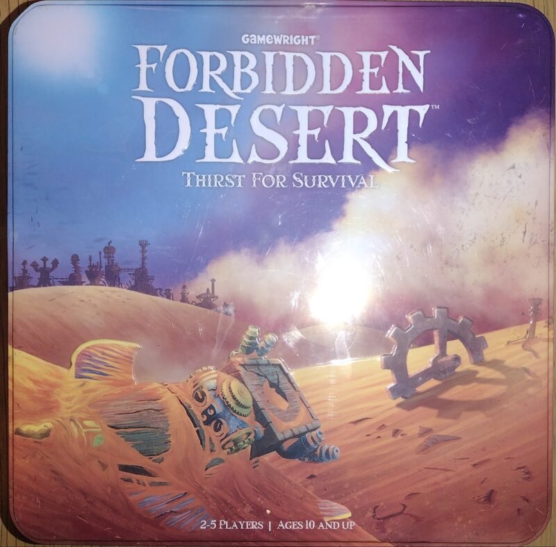Forbidden Desert is the second game in the Forbidden series by Gamewright Games: Forbidden Island, Forbidden Desert, Forbidden Sky, and Forbidden Jungle. If you are looking for a challenging cooperative game, Forbidden Desert may be just what you need. This