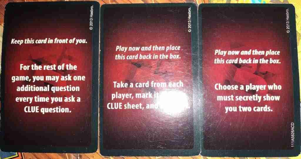 Our version of Clue has two sides to the board; one side is the original game, and the other side depicts a boardwalk. In both versions, players are using their pawn to move between the different rooms. They also need to use the cards to determine which room the crime took place in.