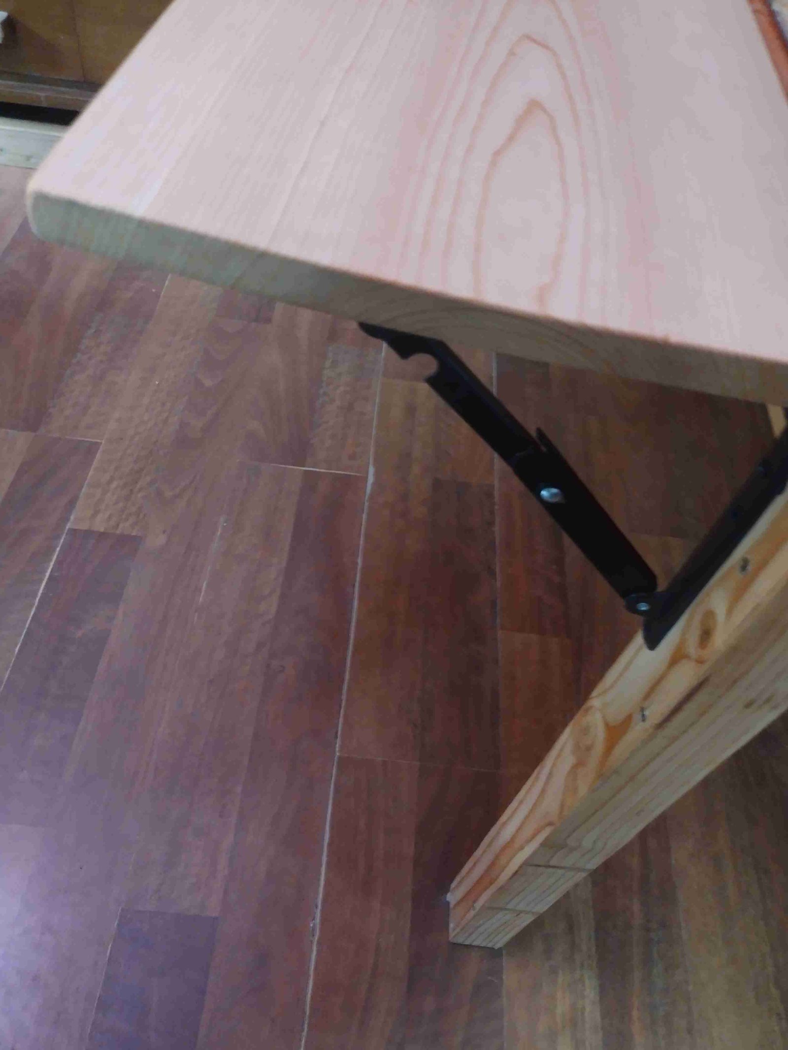So that 2’x4’ is the base gaming area. It has 2” tall sides and, ideally, is lined in felt. I’m sensitive to extra noise, so I wanted a padded area to roll dice into. When we want to eat, we just need to put the top on the table. This covers up our game while keeping everything neat. Then one (originally, both) of the longer sides has a 1’ wing that can come up and is even with the top of the lid. This means we have a little bit of table space for individual pieces or boards. We frequently also use small folding tables for extra table space. Again, if this gaming table were designed for a house, I’d want something bigger.