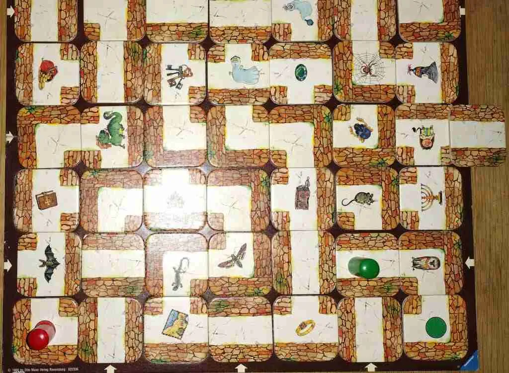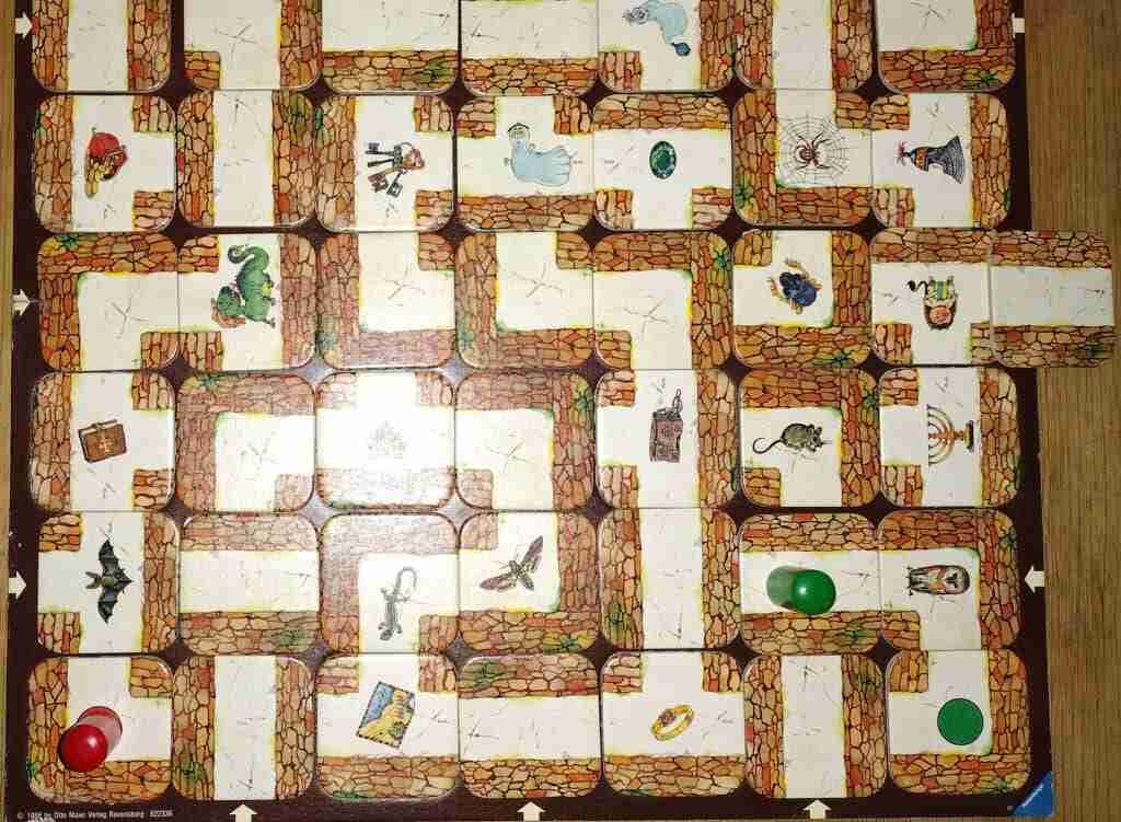Each of the cards has a picture on it that corresponds to the same picture on one of the tiles. Labyrinth can only be played by up to 4 players, and everyone starts in a different corner. Look at the first card on your stack so you know where you’re trying to go, but don’t show the other players.