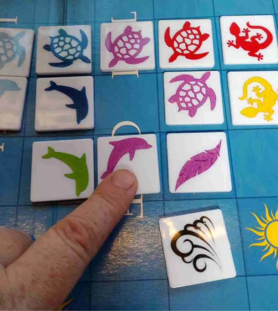 Calming, pretty pictures, matching, and light competitionâyes, please! This is Latice, and my family really enjoys it! Lattice can be played by two to four players and has no reading, so can be enjoyed by your whole family.