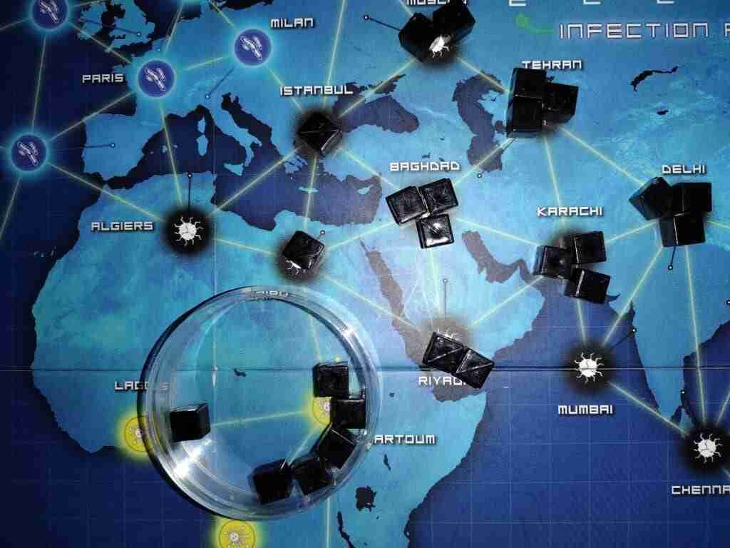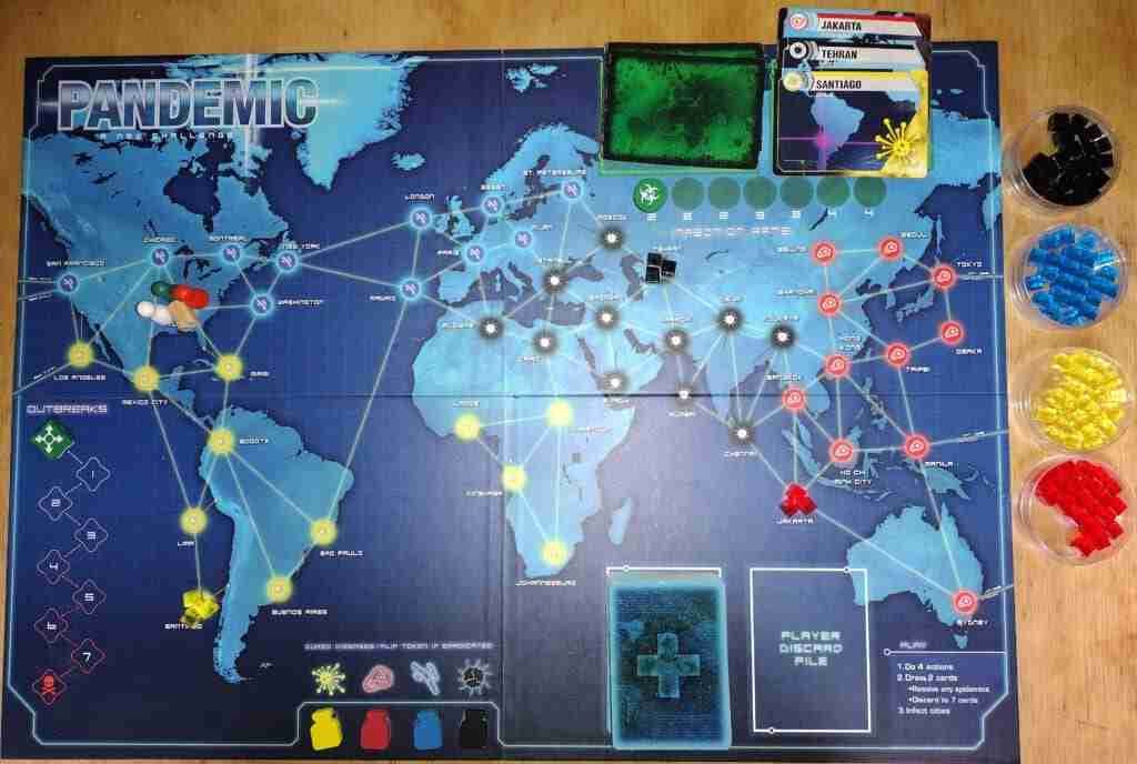 The idea is that you work for the CDC in Atlanta and are one of seven possible specialists: Contingency Planner, Scientist, Medic, Operations Expert, Quarantine Specialist, Researcher, or Dispatcher. Diseases break out in nine different cities, and you and your colleagues rush to find cures for the four different diseases.
