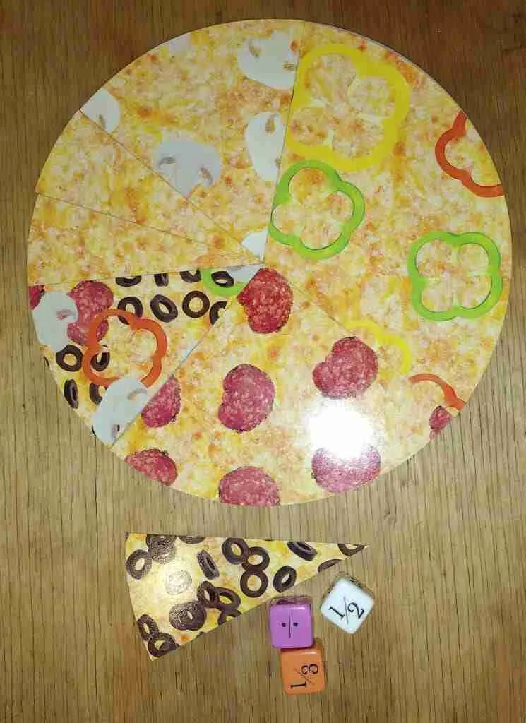 When we tried the âAdvanced Fractionsâ rules, where you multiply or divide by your entire pizza, not just one slice, my husband did end up with 6 pizzas before we called it quits (and he was going for just 1 pizza). However, that hadnât happened to me during play-testing, so I donât think itâs an overly common occurrence. It sure did lead to lots of laughs, though!