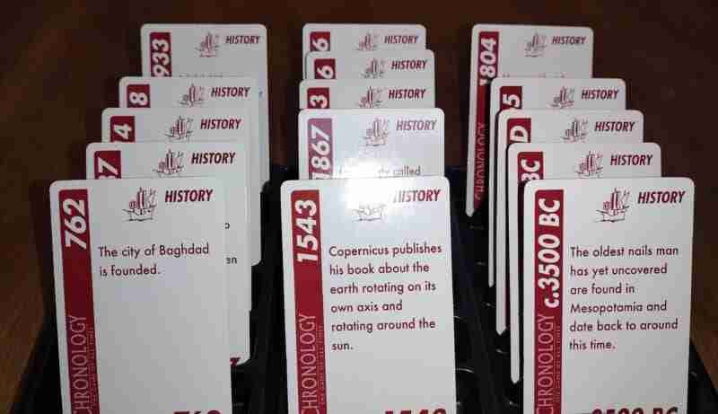 If you would like a game to cover all of history, Chronology and Timeline are your best bets. While Timeline does not require reading as it is picture-based, Chronology does have lots of words and requires reading for some of