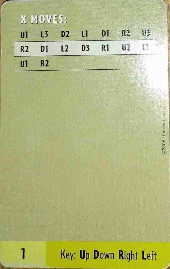 Included in the game are the grooved game tray (similar to Rush Hour’s), 40 challenge cards, and 21 game tokens. The game is also supposed to come with a storage bag, but we got our game used and it was missing our bag.
