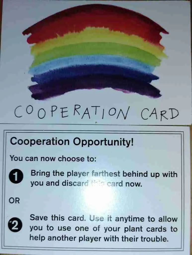 Gameplay is admittedly not the most exciting. It’s a basic board game with some shortcuts. Some of the spaces have you pull an herb card, some have you pull a trouble card, and there are some rest spaces, too. When you pull a trouble card, see if you can use one of your herbs to help yourself. If you can’t, another player can give you an herb card if they have a cooperation card. Once your trouble is cured, advance to the nearest rest space.